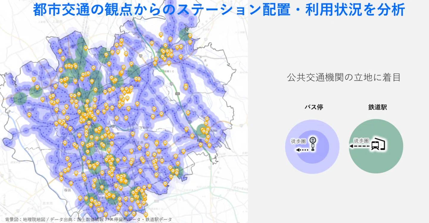 業務内容としてまずは、プラットフォーム統括の担当者や自治体と連携を図りながら、シェアサイクル導入の効果検証を賑わい創出や回遊性、交通利便性向上などの都市計画・交通計画の視点から、可視化・分析を行っています。