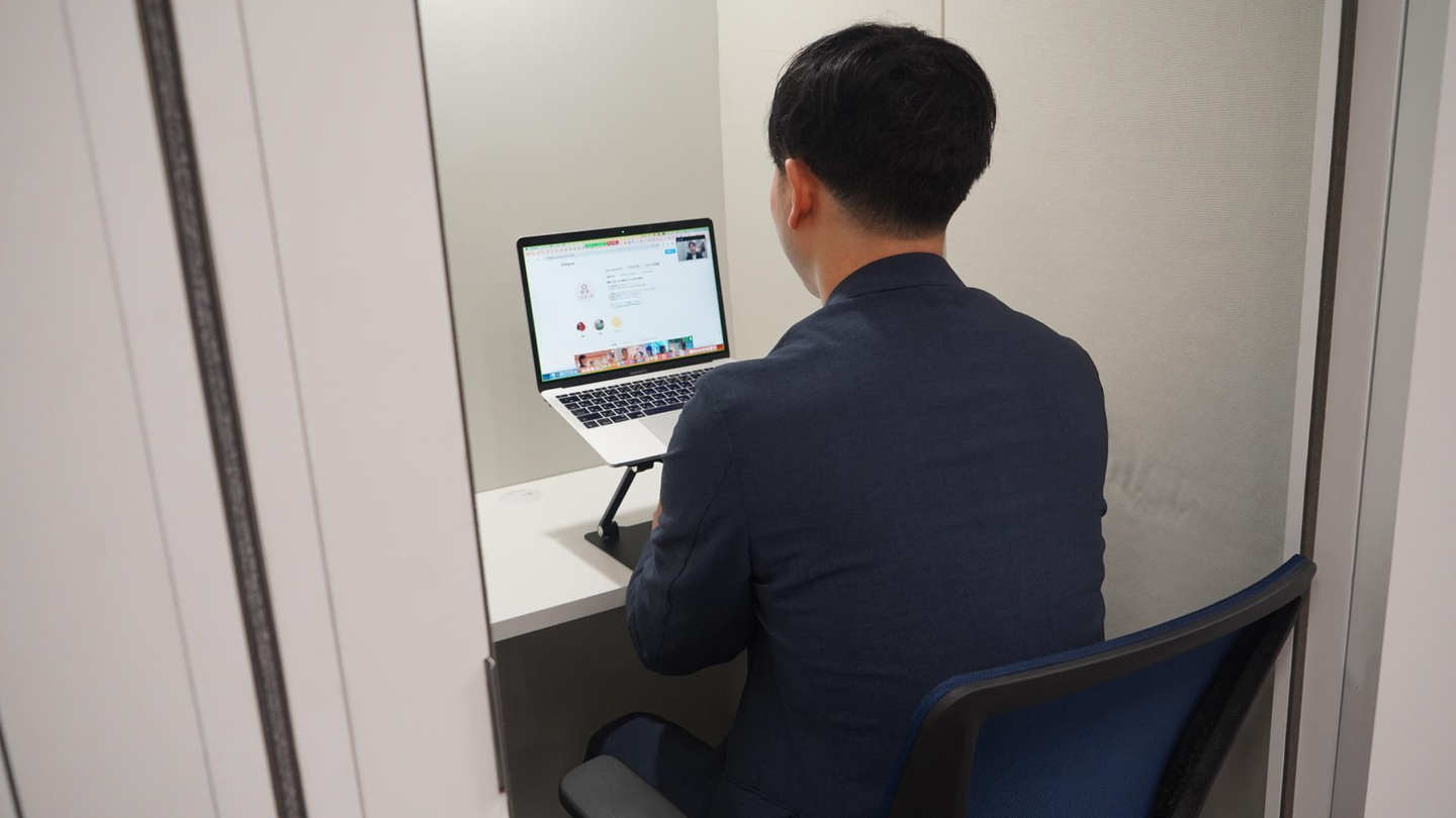 弊社ではオンラインでのミーティングや商談の多いので、周りの音を遮断し集中できるテレカンブースも用意しています!