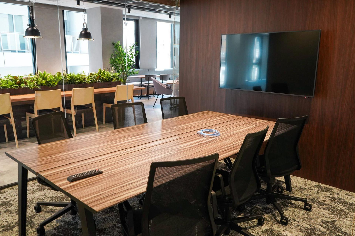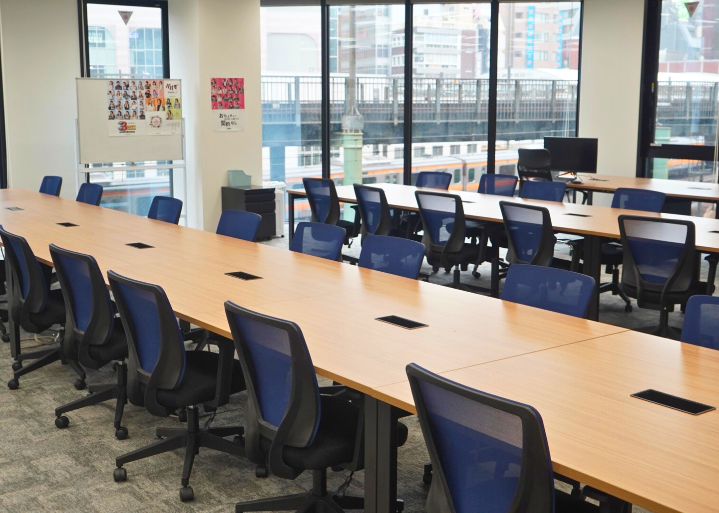 会議室には、2部屋共に、大きなモニターとホワイトボードを完備していて、会議が捗ります。