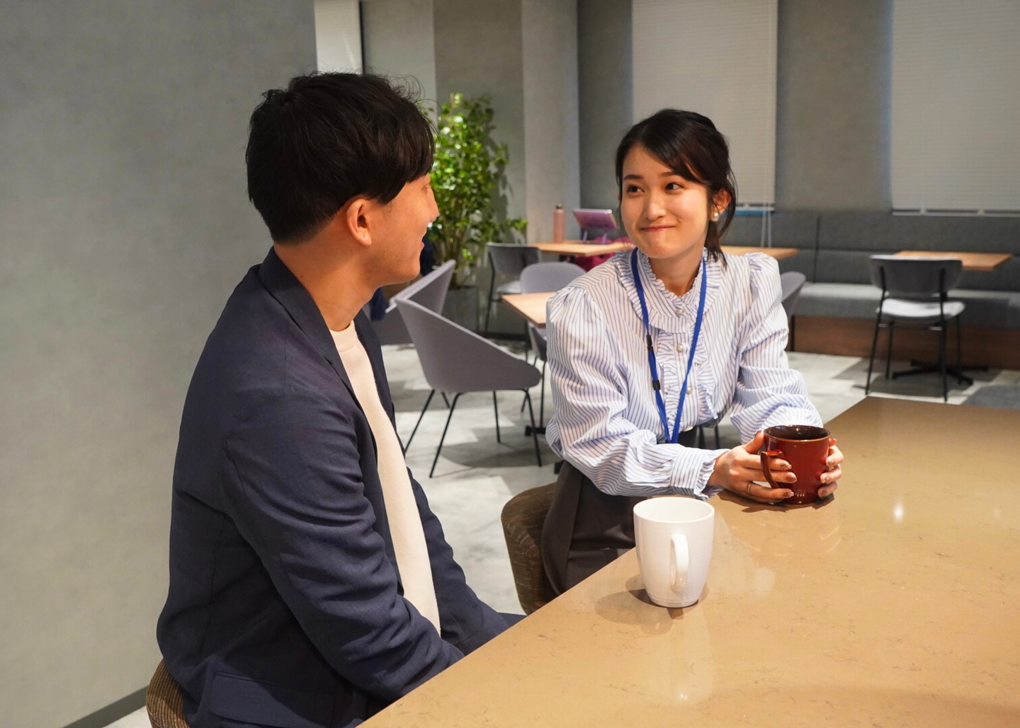 平日の日中は、カフェスペースで話し合いが多く行われとても明るい雰囲気になります!