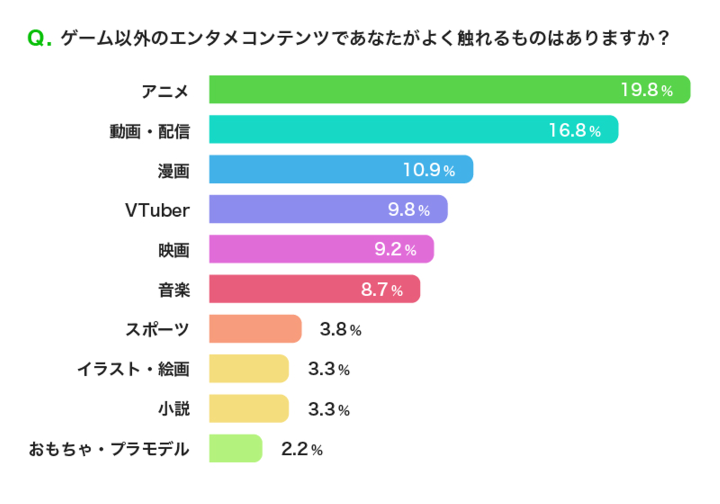 1番回答が多かったのはアニメで、どんなジャンルが好きかの設問ではファンタジー・アクション・ミステリー・日常系など多様な回答が集まりました。