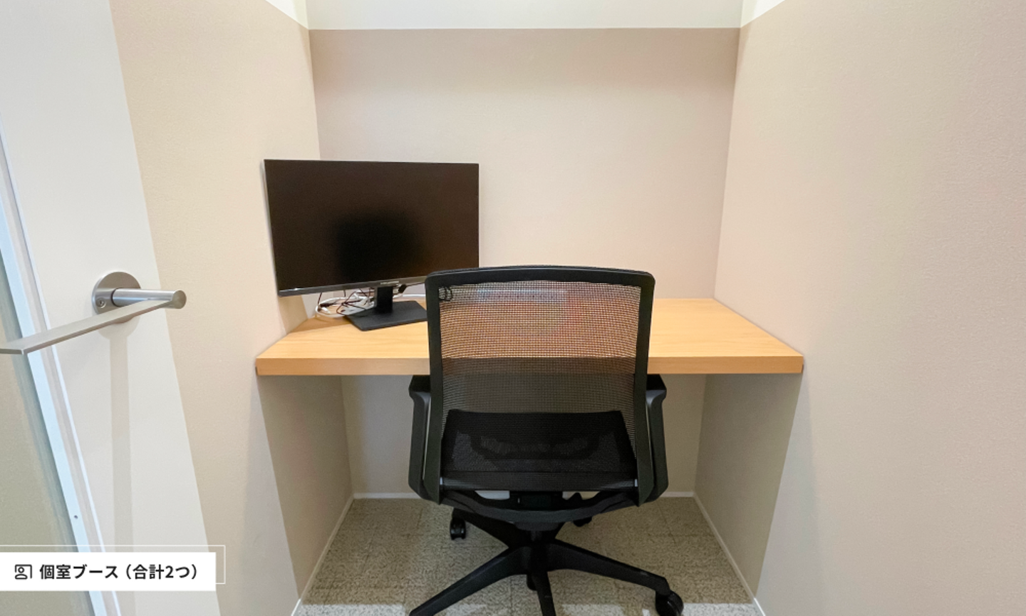会議室は3つあり、社内打ち合わせからクライアント商談、来客対応まで、さまざまなシーンに対応できるようになりました。さらに、集中作業にも使える個室ブースも2つ完備。快適に働ける環境が揃っています!