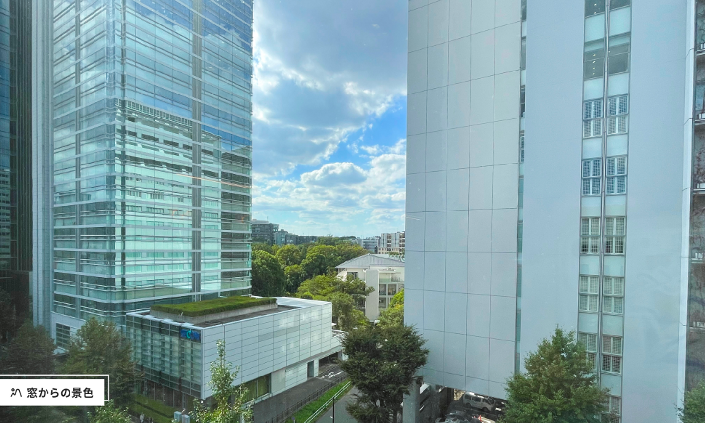 原宿は明治神宮や竹下通りなど観光地としても有名で賑わっていますが、オフィスのすぐ近くにある東郷神社は、静けさが感じられる落ち着いた場所です。窓からは空や木々が見え、仕事の合間にリフレッシュできる心地よい空間です。