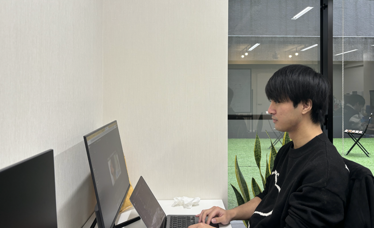 GenAiでインターンシップを始めた理由は、一言で言えば”ご縁”だと感じています。先述した通り、スキルアップを目指して新たなインターン先を探していた時に、東大生向けのインターン紹介媒体である「UT-board」を通じてGenAiを知りました。元々、創業間もないスタートアップに興味がありましたので、COOの菅原さんに面談の機会をいただきました。菅原さんとお話させていただく上で、人当たりも良く、暖かい雰囲気を感じて、直感的に長く務めることができるなと思い、最終的にジョインすることを決めました。
