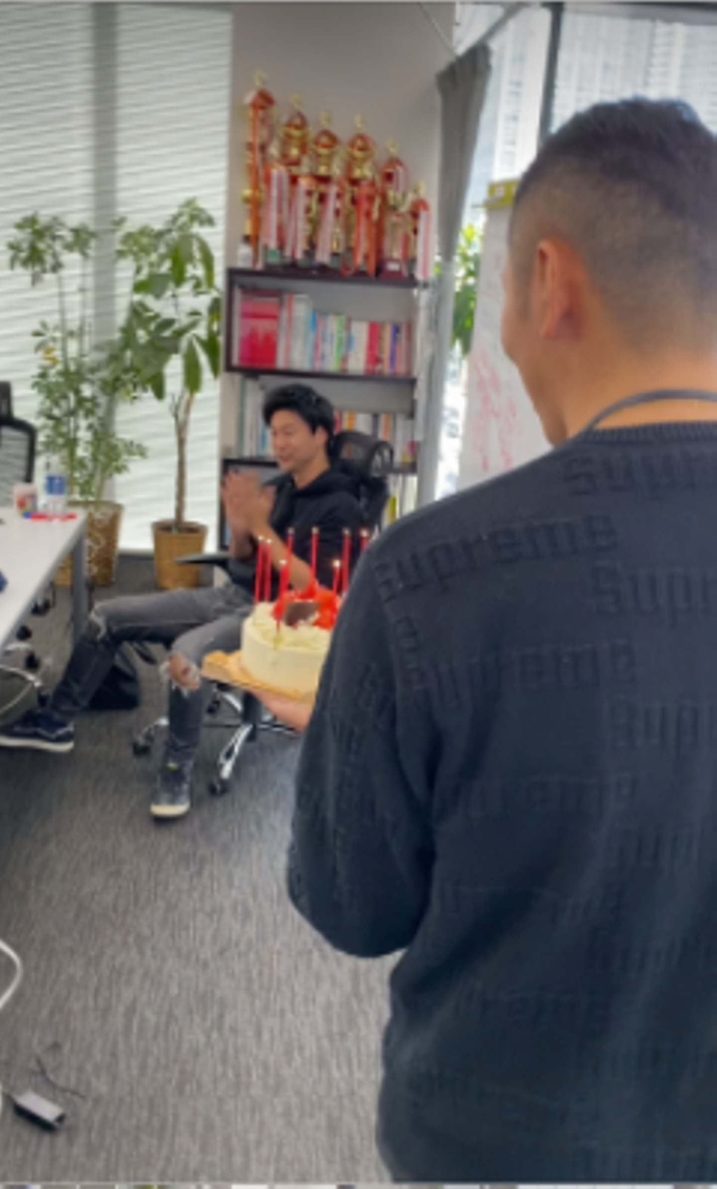 実は前日がバースデー当日だったので社員全員からの動画メッセージでお祝いをしていました。