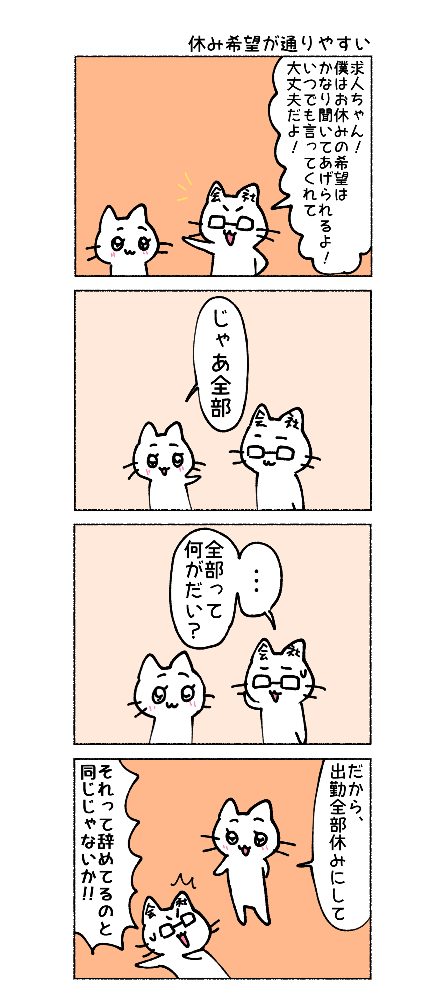 当然ながら直前にお休みの連絡を出すのはNGなのでご注意を。大体1ヶ月前までにお休み希望を頂ければほぼほぼ通ります。