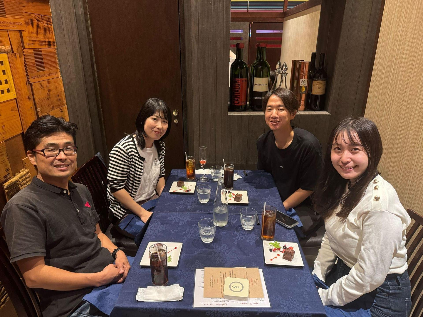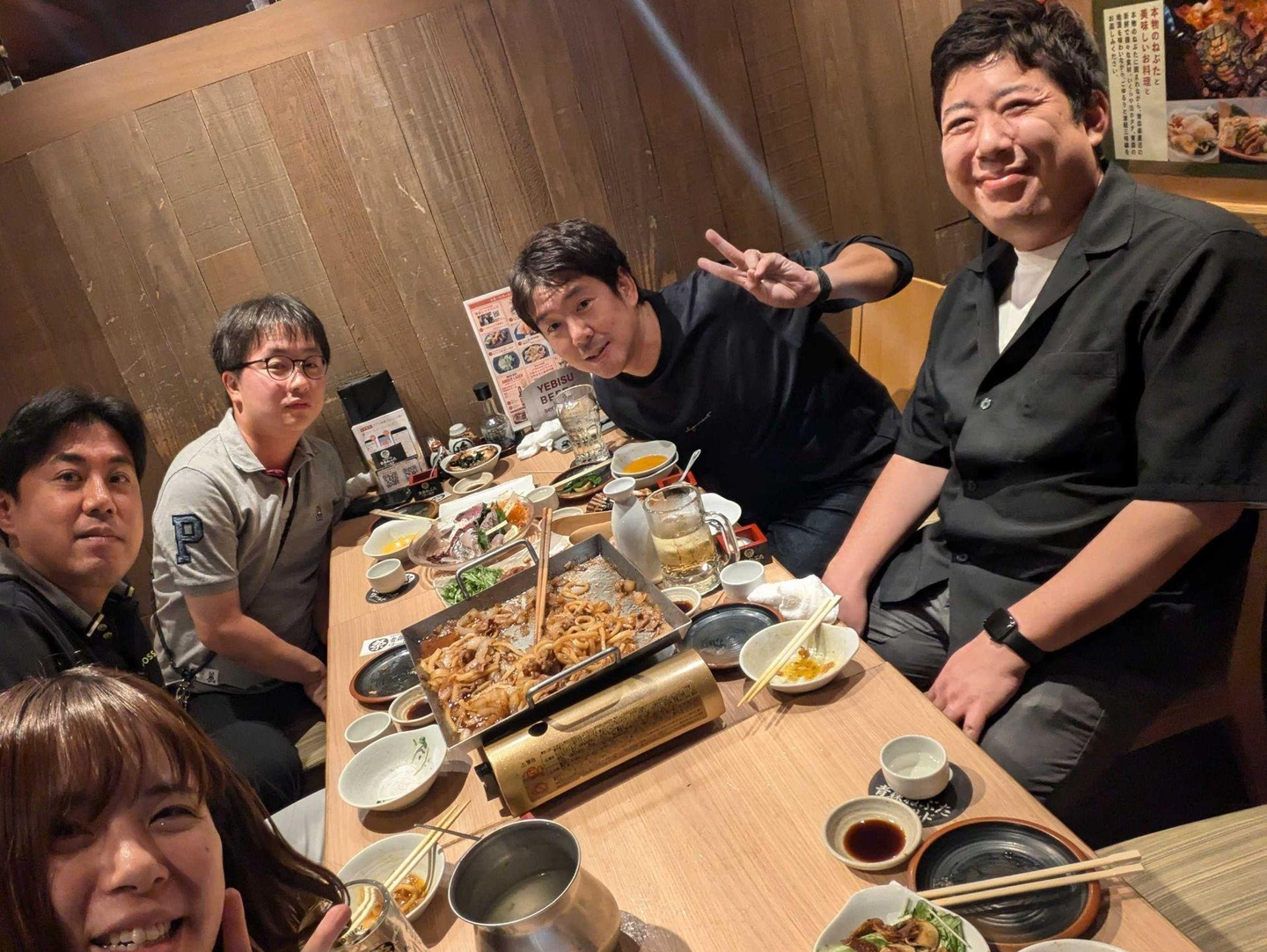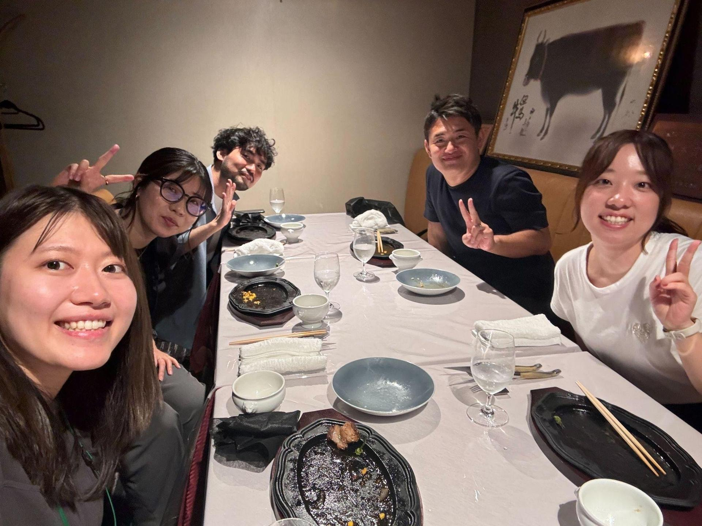 「今回は、お肉のコースを堪能。部署もさまざまで、普段の業務や前職のこと、出身地や趣味(ゲームやスポーツ、エンタメ等々)のほか、「推しのライブチケットの当選発表」の瞬間をみんなで確認し喜び合うなど、幸せを共有しました!