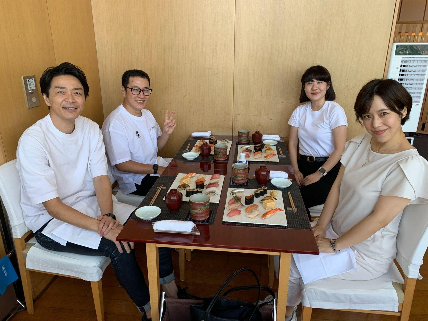 「和食を食べたいメンバーが多かったので、地上200mでお寿司をいただきました!所属部署はさまざまでしたが、男性陣が二人とも高校時代に寮生活だったという共通点から、ちょっと珍しい寮生活のお話など、おいしいお寿司とともに盛り上がりました!!」