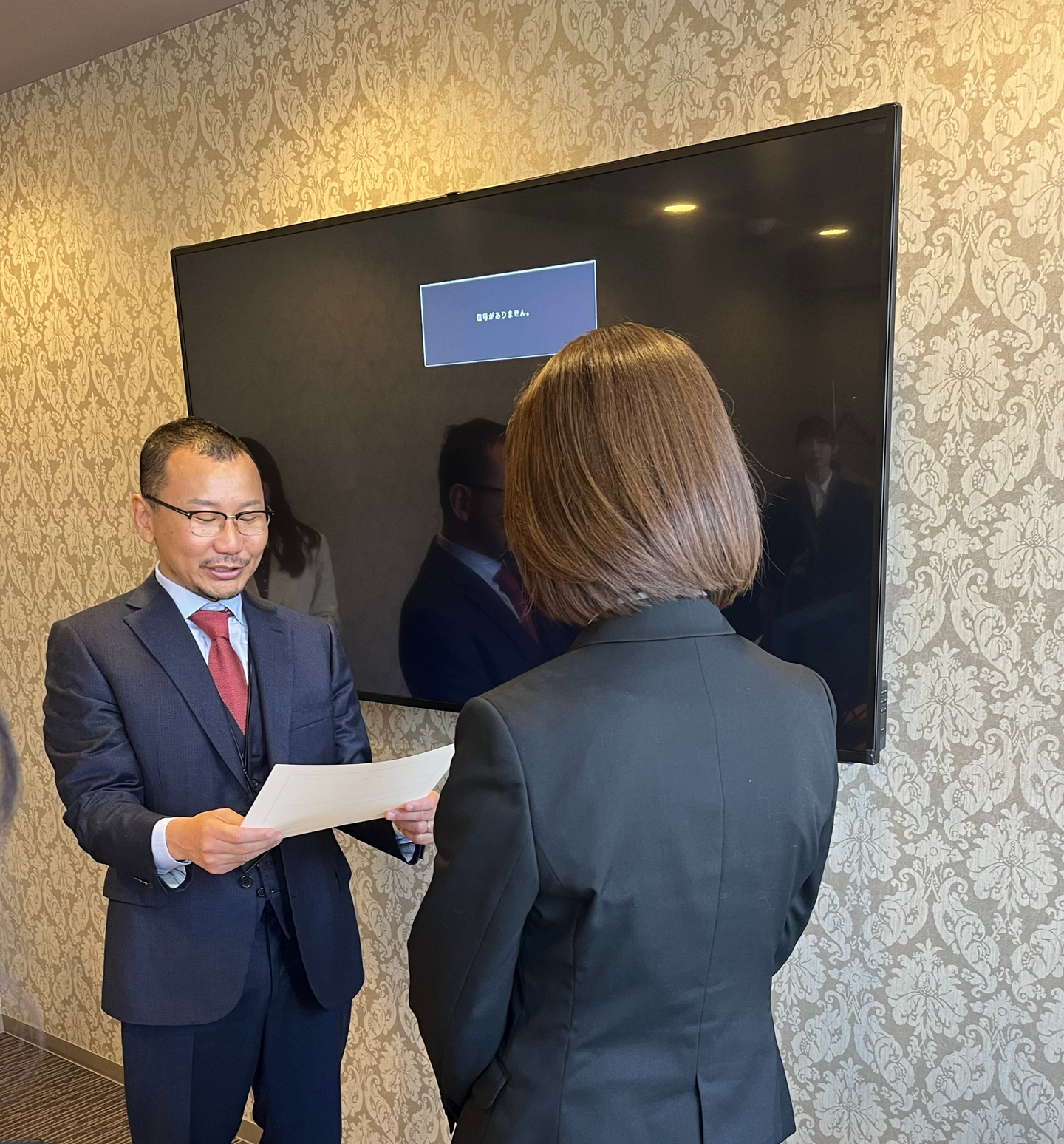 代表よりご挨拶と辞令の交付を行い、新卒所員の背中からは終始緊張感を感じられました。ここからいよいよ社会人としての第一歩を踏み出します。