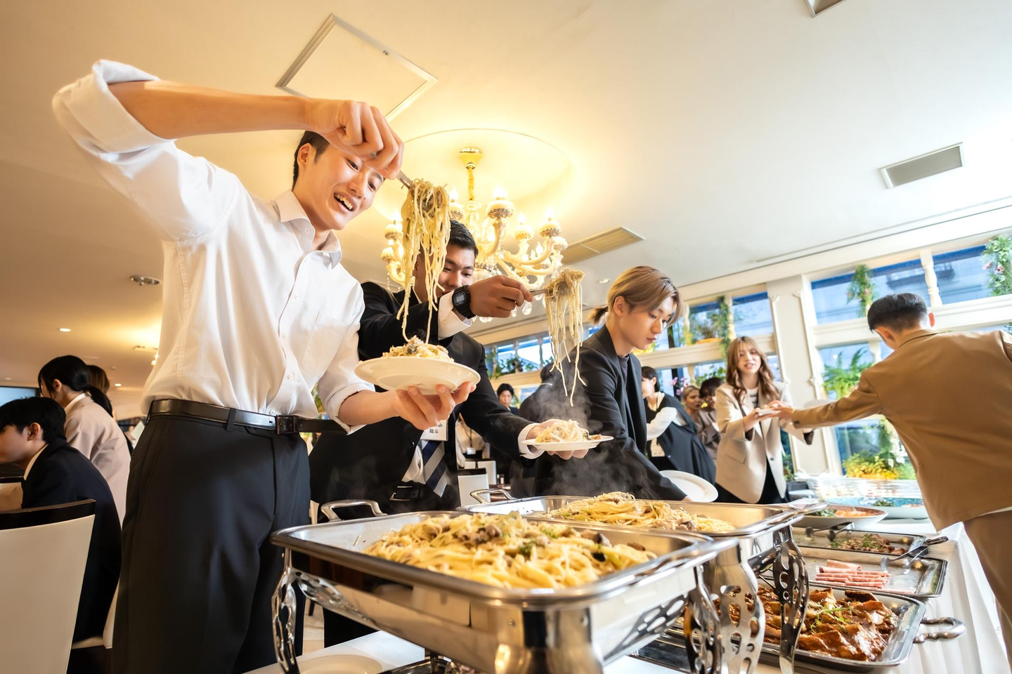 渋谷にある素敵なパーティー会場を貸し切り、ビュッフェ形式で好きな料理をすきなだけとっていきます!(あっとゆうまになくなっちゃいました笑)