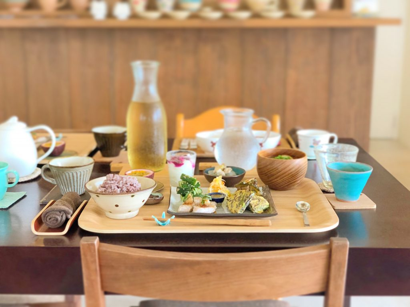 朝食の器やお部屋グラス湯のみなどには、私たちが沖縄の工房や市を巡り出会った大好きな沖縄県内作家さんのものを利用しています。tinto*tintoのためにオーダーして作って頂いたものもあります。旅から帰って大切な何かに気づく、そんな時間と空間を提供するというのが私たちの理念です。器やグラスひとつひとつからでもお客様に何かを感じて頂くこともあるものです。