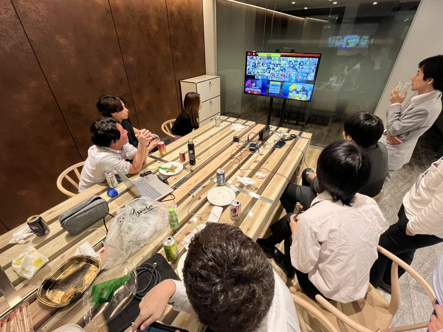 仕事終わりに友達の家に集まりゲームを楽しんでいるような光景でした。
