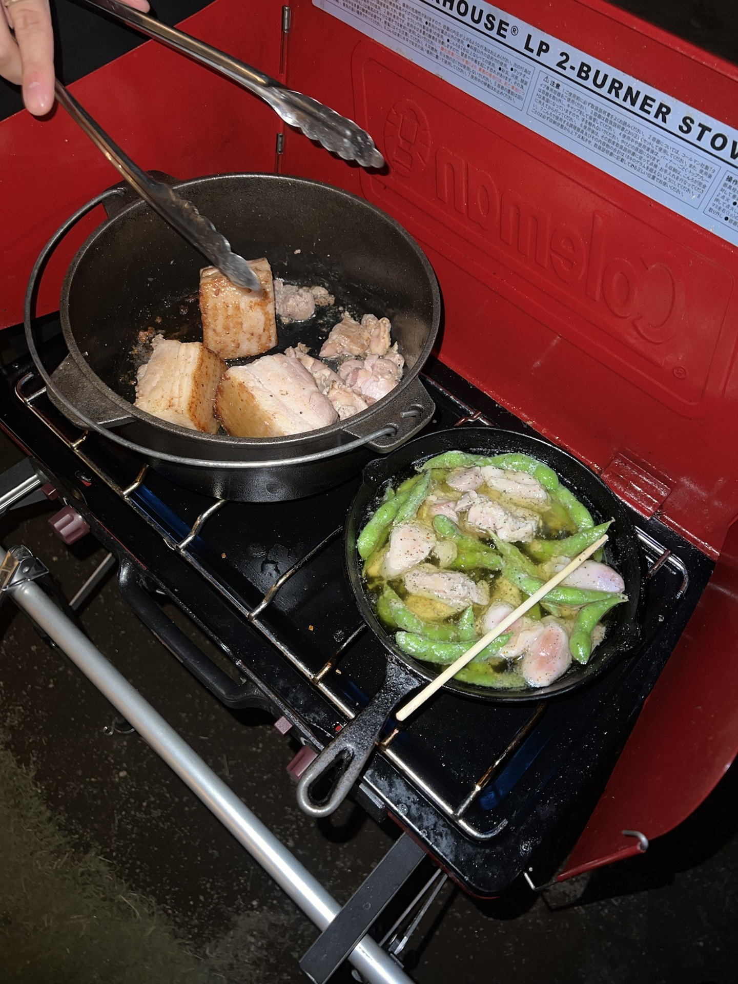 お酒を楽しむ人、テントで暖を取りながらトークを楽しむ人、そして料理対決をする人も・・・
