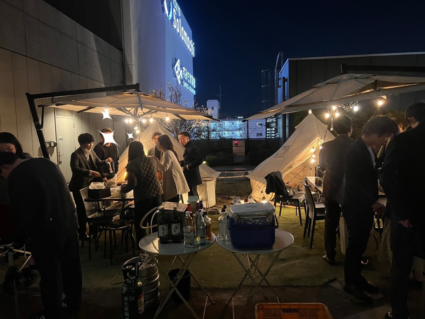 当日は非常に寒い夜でしたが、合間にグランピングテントで暖を取りながらみんなで楽しみました~