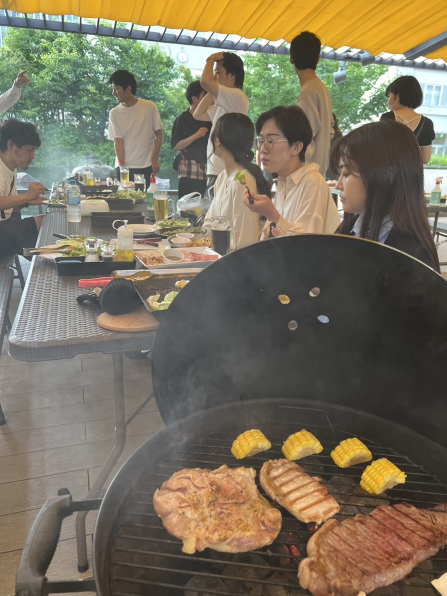 プライベートでよくキャンプに行くメンバーが率先してお肉を焼いてくれたので、
