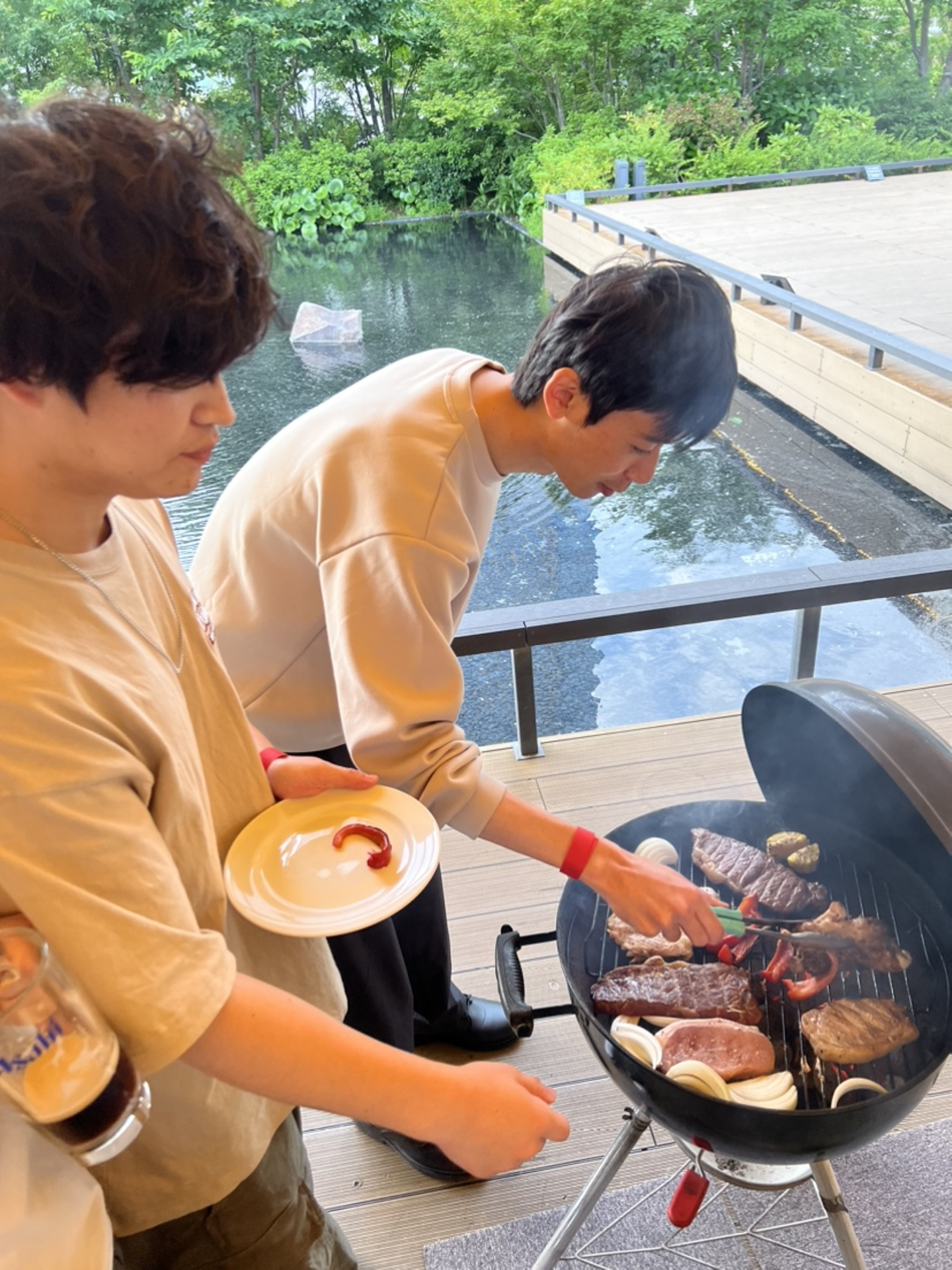 一生懸命お肉を焼く遠矢くん(奥)と焼いてる風の栗橋くん(手前)