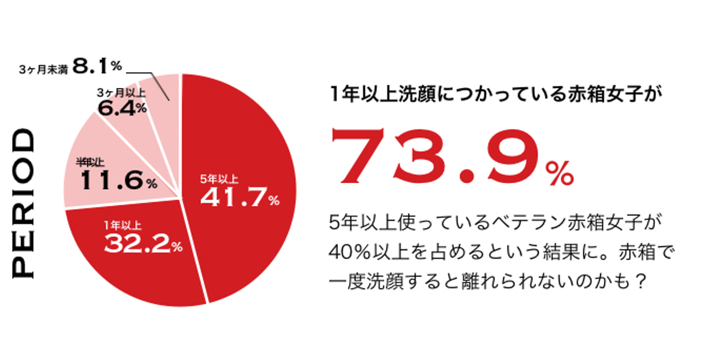 また、1年以上赤箱を使用している人は73.9%、そのうち5年以上使用している人が41.7%で、多くのロイヤルユーザーが存在していました。