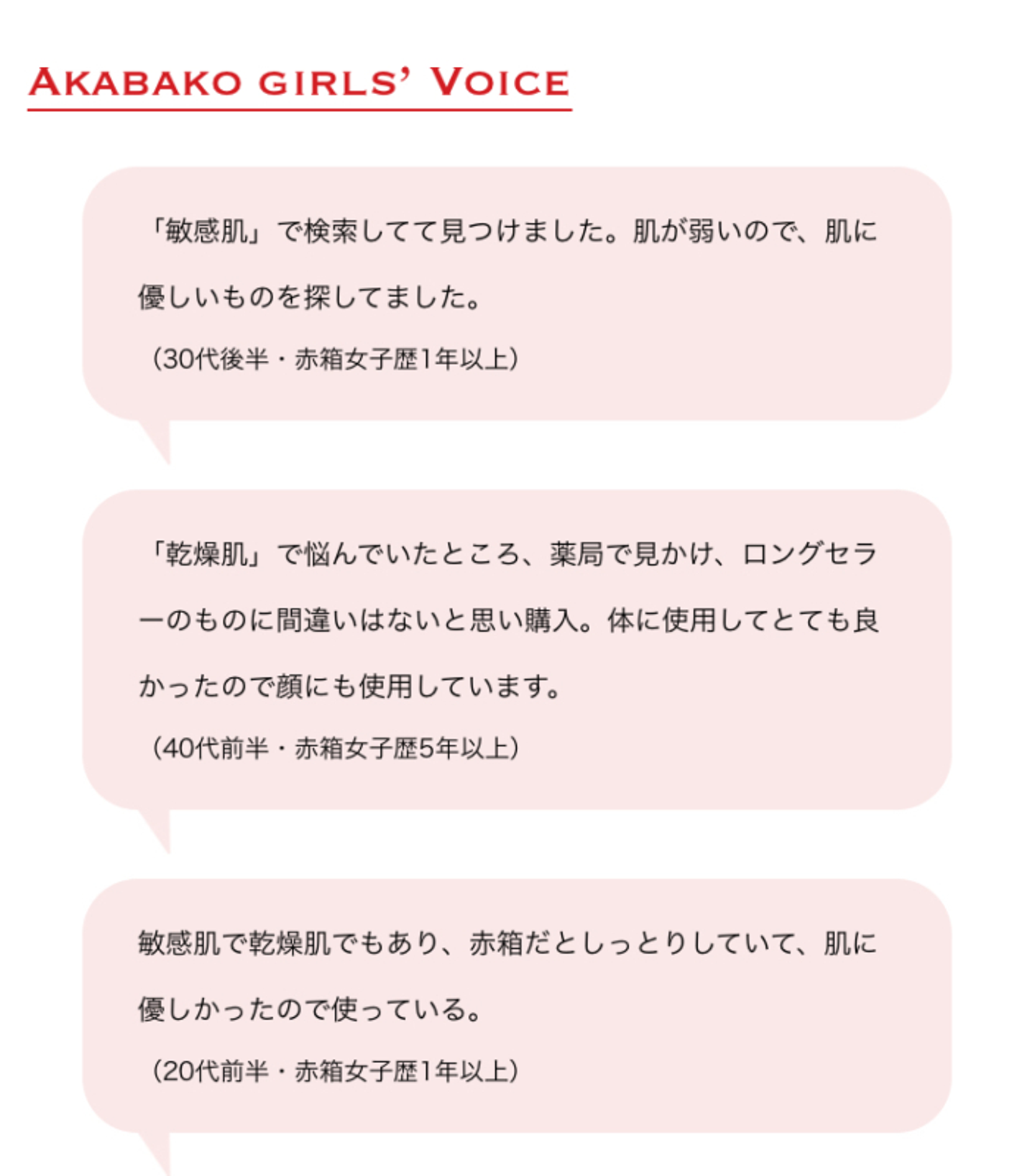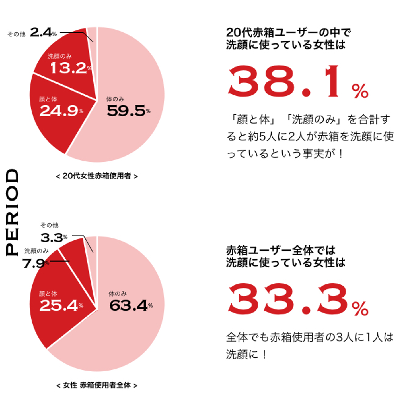 一筆:20代ユーザーの半数近くが赤箱を洗顔用に使っていたのですね。しかも、赤箱自体の熱狂的なファンも多かったと。