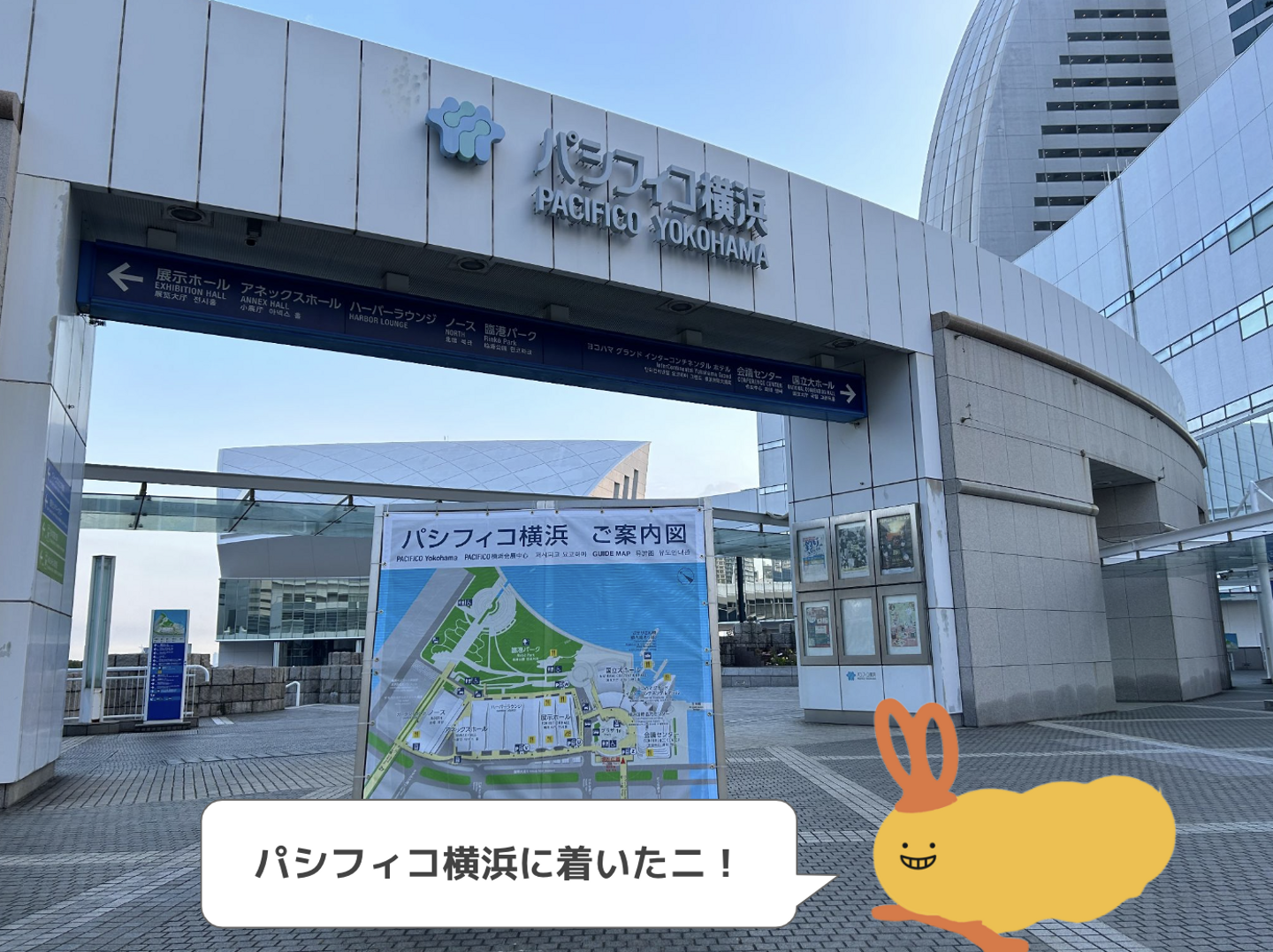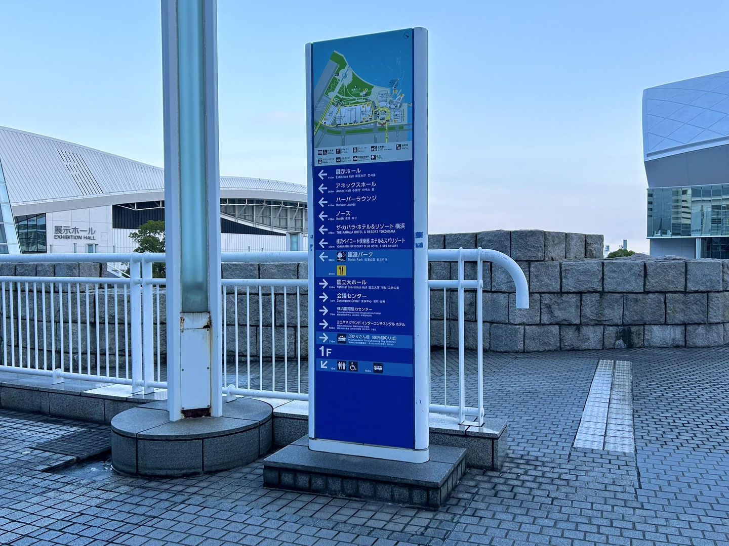 パシフィコ横浜には、展示ホールを中心にコトブキの外構サインが整備されているんだニ。