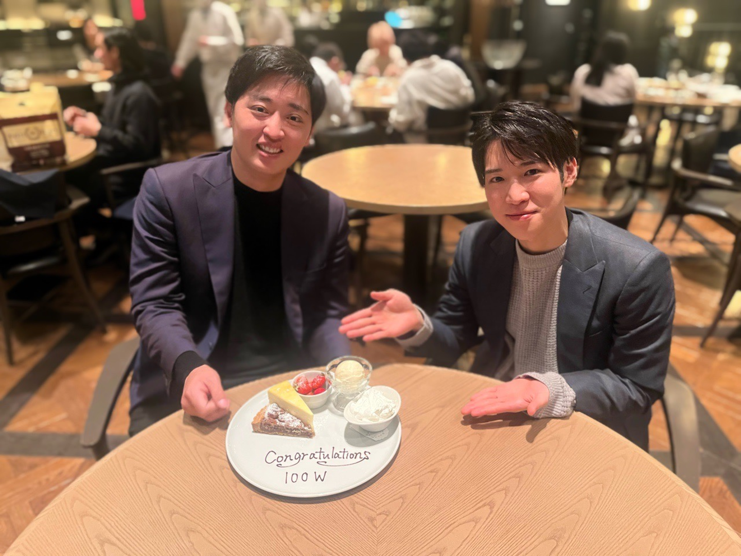 ↓写真は弊社役員の平賀がその偉業達成のお祝いをしている様子です😊