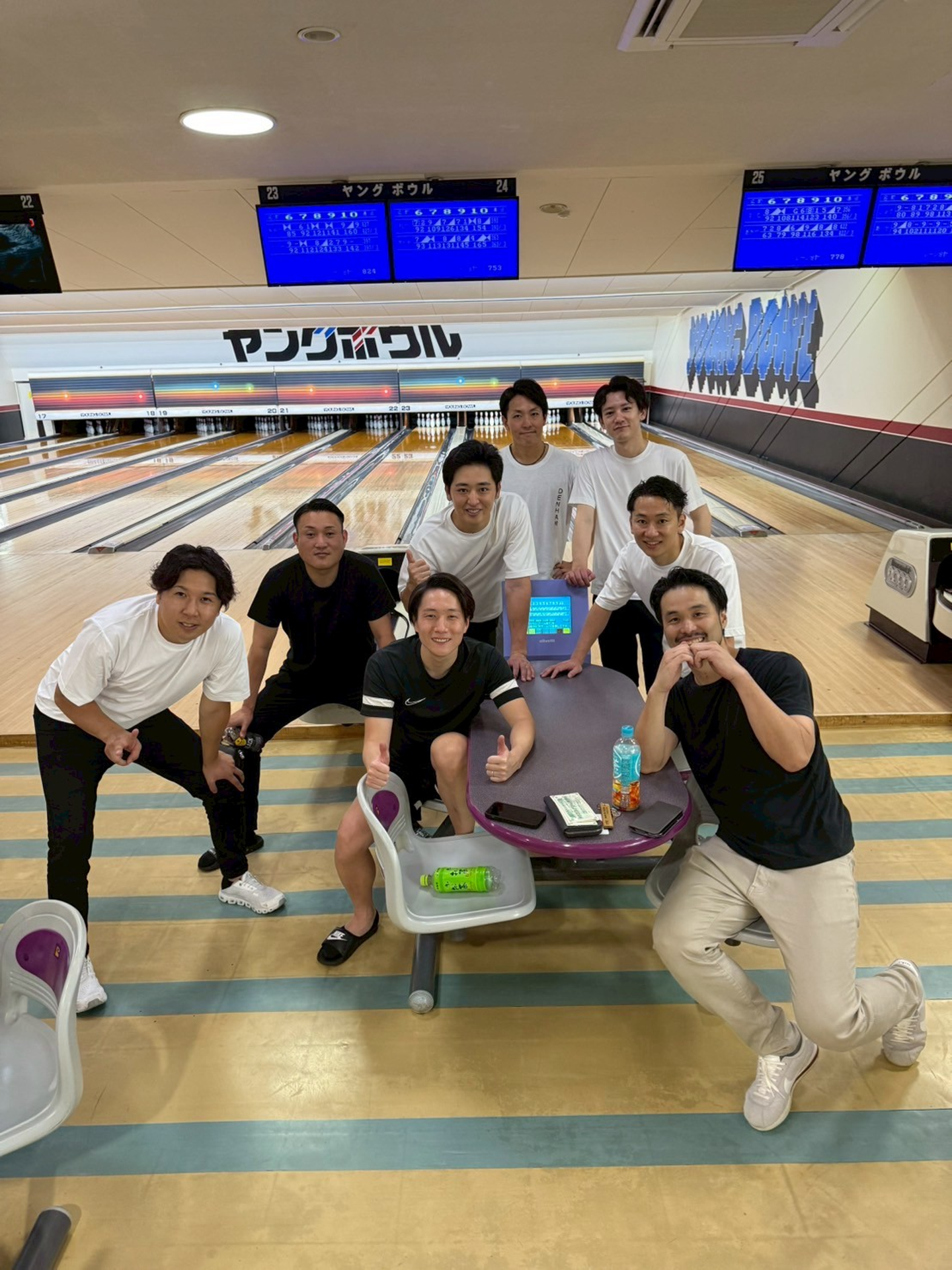 夜更けには恒例(?)のボウリングへ!
