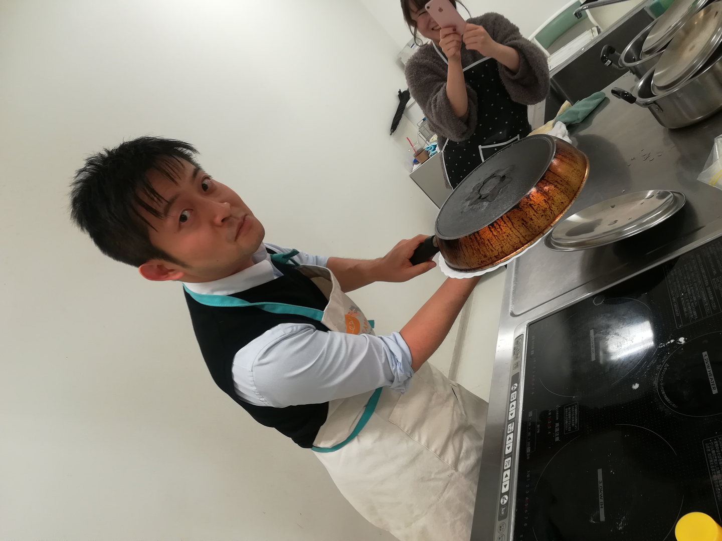 焼けたらひっくり返して(林のドヤ顔パート2)(後ろでわらってる安齋)