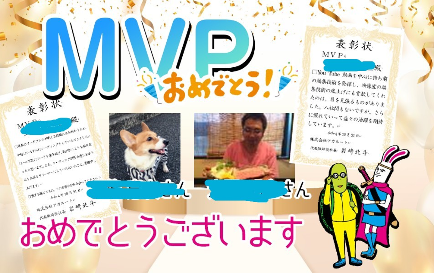 アガルートでは四半期に1度MVPを発表しており、受賞者には金一封+表彰状が贈られます!