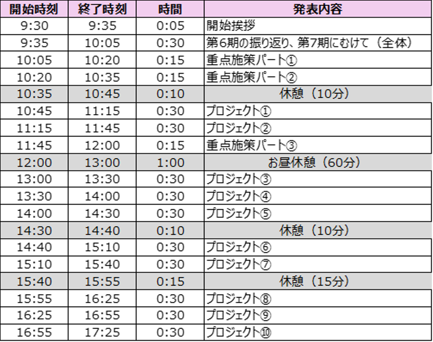 前回記事でもご紹介しましたが、PJ共有会は全社員が一堂に会し、丸一日かけて会社の目指す方向性や進行中の各プロジェクトの成果を発表し合います。