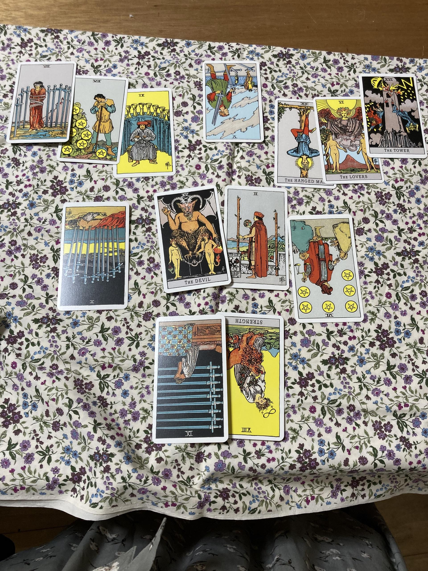 ⏫私の運勢を表したタロットカード達。分かる方には分かりますかね、、、前途多難です!←でも負けない!