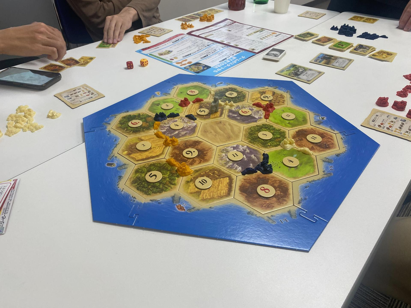 ほとんどのメンバーが未経験だったため、全員でルールを検索しながらのスタートです。私は観戦に回りましたが、ひたすら街道を伸ばす人、都市発展に勤しむ人、発展カードを使いこなす人など作戦は様々でした。盤面を囲んで交渉が白熱し、「第一回カタン大会」は、巧な交渉術を見せた社長の優勝で幕を閉じました!👏
