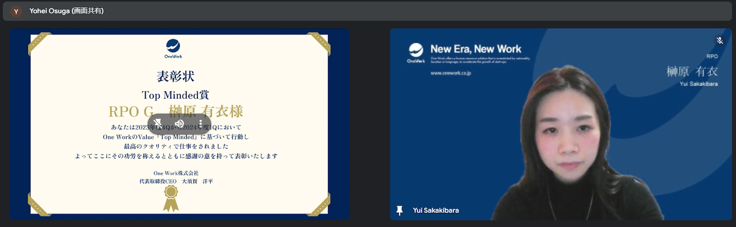 また、半期に一度、特に際立ったValueを発揮したメンバーを称える「Value表彰」も実施しています。