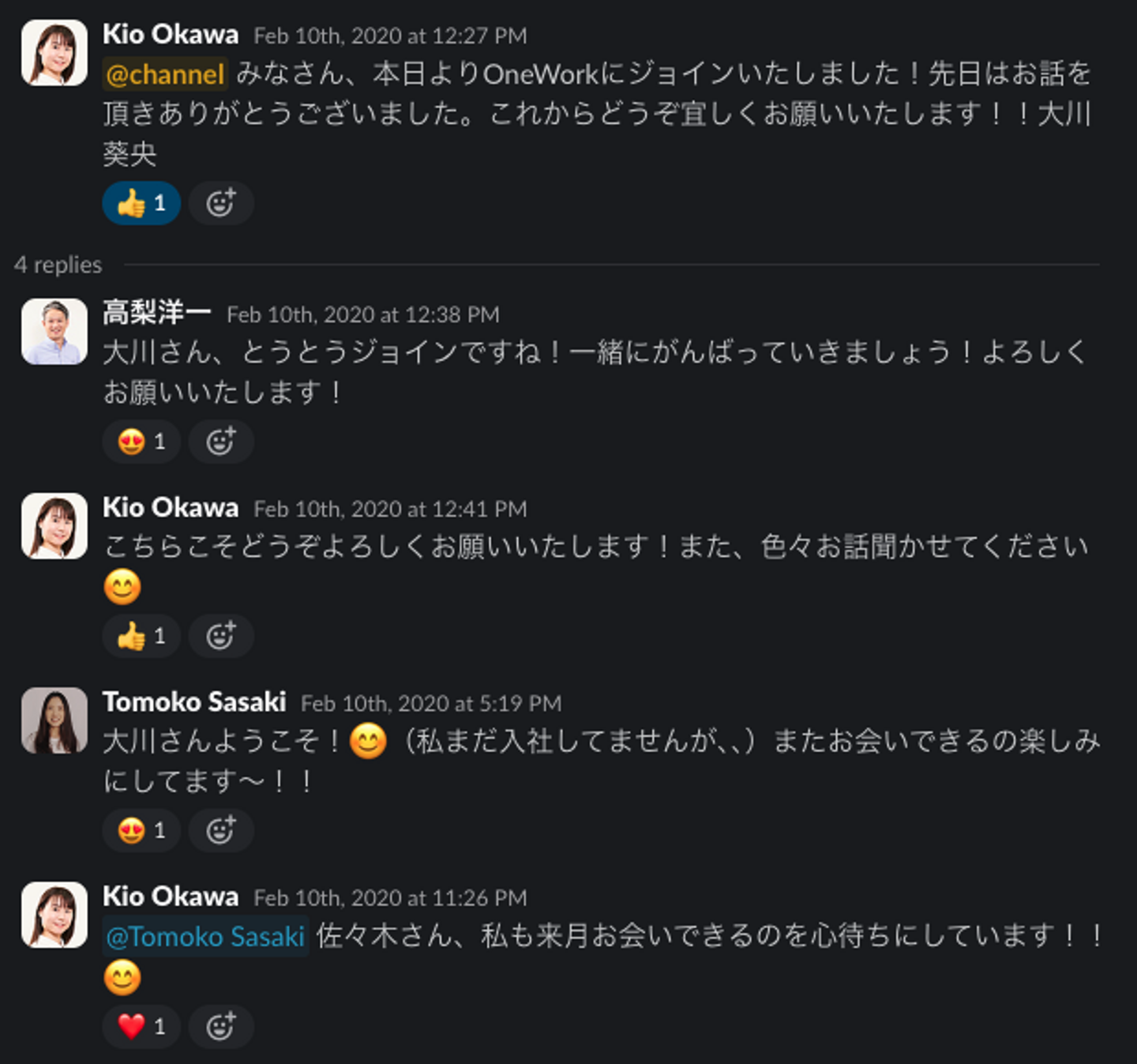 キャリアアドバイザーは、大手および外国人材エージェントに人材紹介を依頼し、10数名との面接を通じて、最終的に大川さんを採用するに至ります。大川さんは、人材ビジネスの経験こそありませんでしたが、One Workの「クロスボーダーHRを通じてよりよい社会をつくっていく」というVisionに強く共感し、スタートアップマインドも強かったため、振り返ってみると創業メンバーとしては最良のメンバーでした。2020年2月から参画、その後はOne Workのエースコンサルタントとして活躍いただくこととなります。