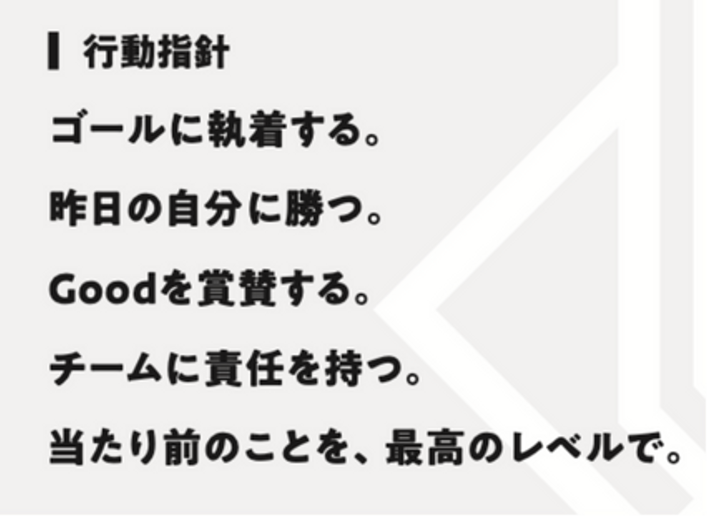 行動指針の「今日をやりきる」を「昨日の自分に勝つ」に変更しました。「やりきる」の解釈が広すぎると気づいたんですよね。うまくいかない日でも「でもがんばったから、私はやり切った」と自己評価できてしまうので、より明確な基準を設定したいという意図があります。