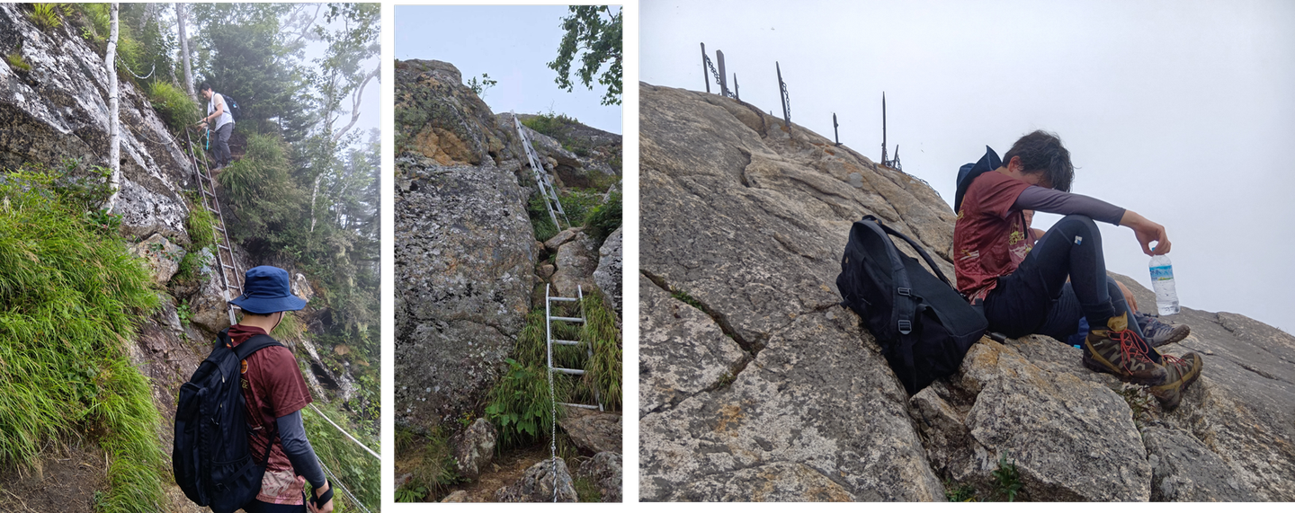 結構急な岩場や、頂上付近ははしごや鎖をつかって上るところがあり、心身ともにかなり疲れましたが