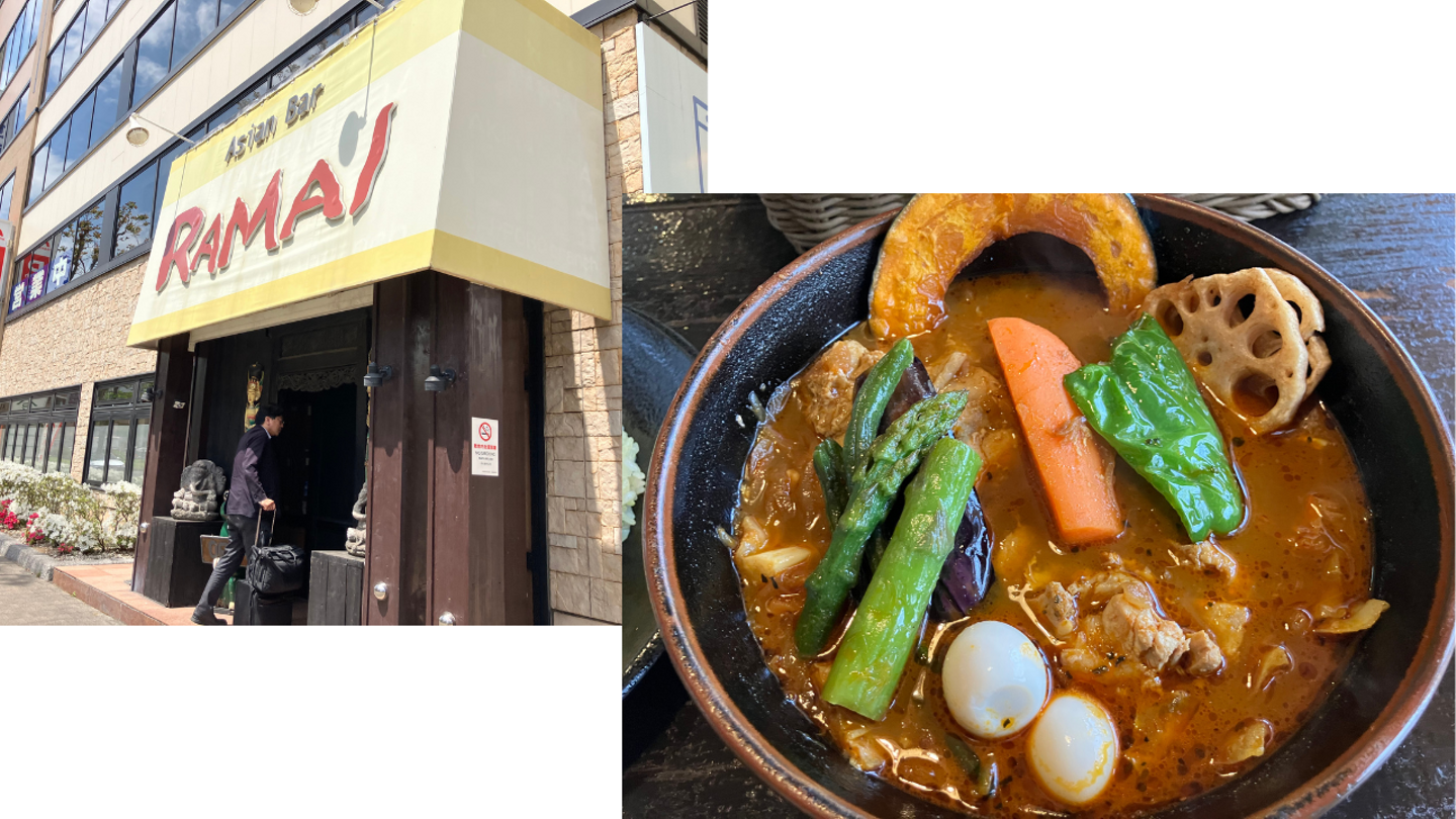 11時半位になり高嶋部長から連絡がありましたので、次のアポイント先へ一緒に向かいます。と、その前にやはりお昼ご飯でお腹を満たして向かおう!と言うことになり、高嶋部長おすすめのスープカレーにむかいました。本日は高嶋部長はキャリーケースとビジネスバックゴロゴロ押し、私はビジネスバックのみの身軽、なはずなのに、なぜかまた小走りでついていきます(笑)。