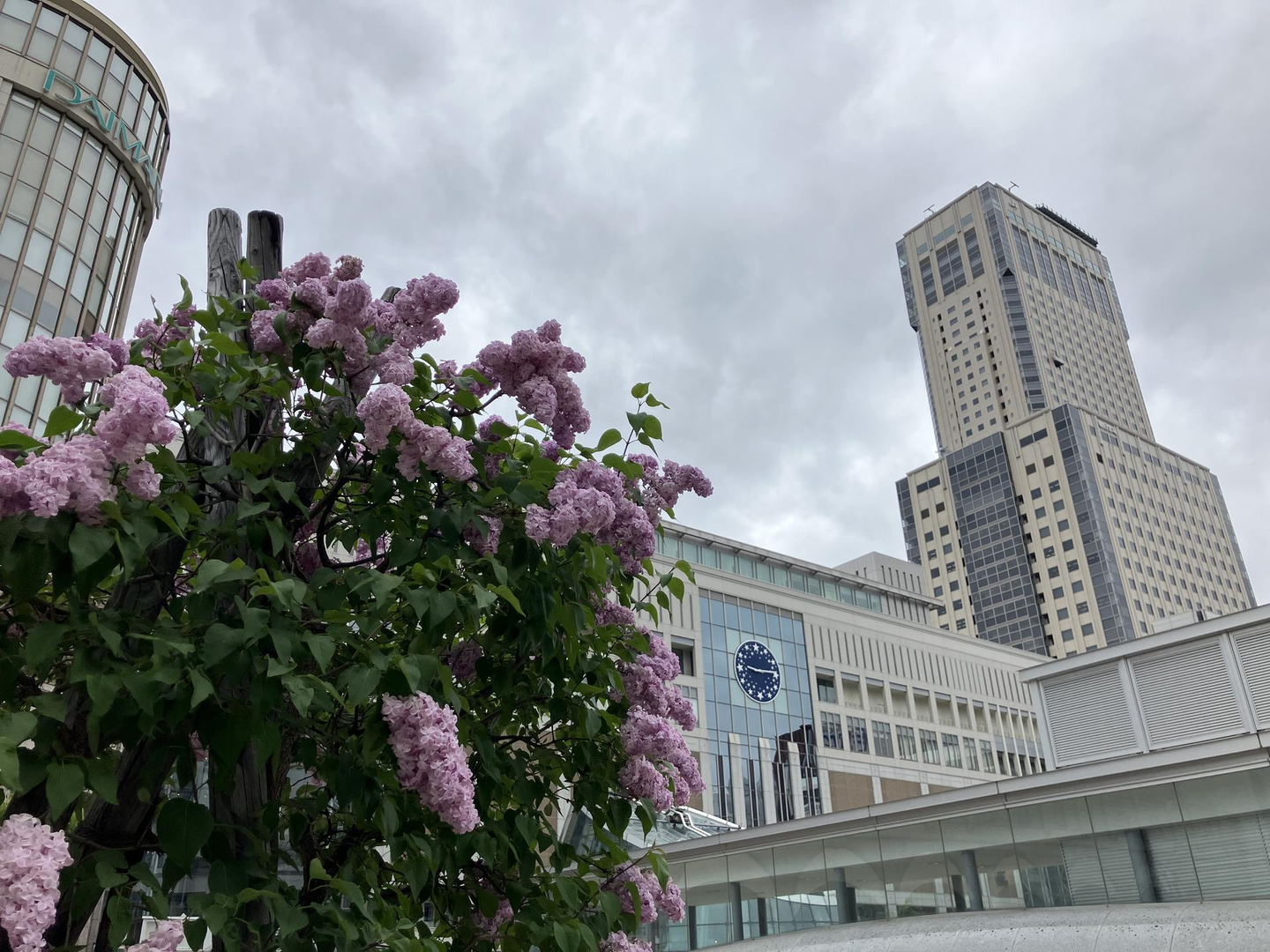 無事札幌(丘珠)空港へ到着しまして、札幌駅へ向かいます。季節はちょうどライラックの時期。札幌駅前にもライラックが咲いていました。あたり一面甘い香りがしており、大通公園ではライラック祭りが開催中とのことでした。