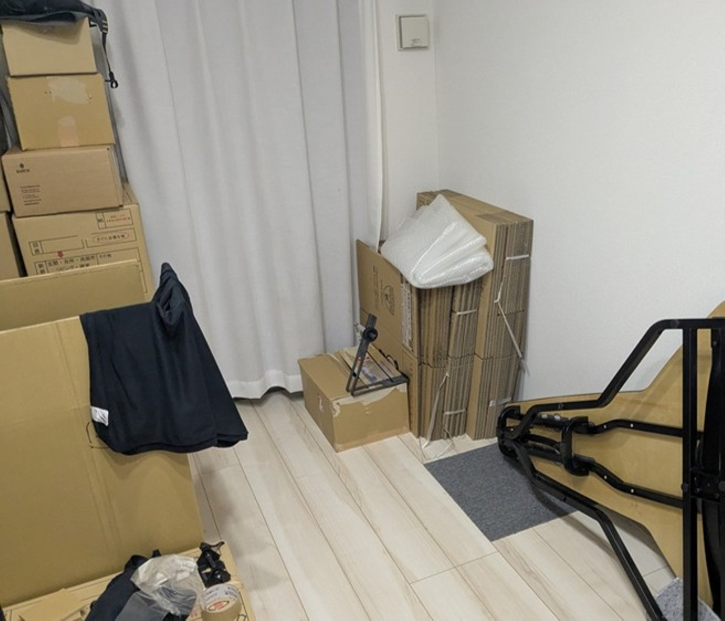 東京の総務メンバーに東京物件の解約の立ち合い(物件管理会社と原状回復箇所 確認)を頼んでいたのもあり、少しでもマシな状態にできる様に頑張りました。(ほぼ同じ画角ですが、掃除後の様子です。これはもう自業自得なのですが、写真に“やらかし”箇所が載っております…。皆さまはゴム製品を直接フローリングに置くのは避けましょう…。)