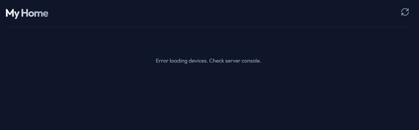 ローカルホストのURLにアクセスしてみたところ、デバイスの代わりに表示されていたのはエラーメッセージ。