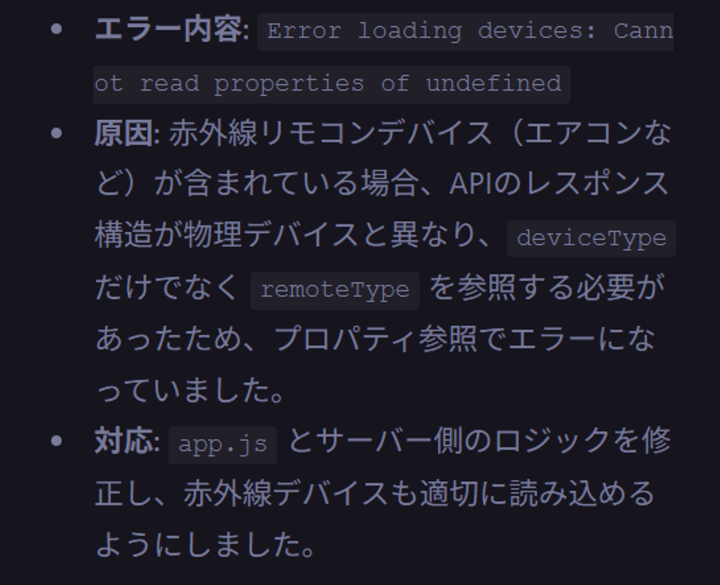 スクショとエラーメッセージをプロンプトに貼り付けて対応を丸投げしたところ