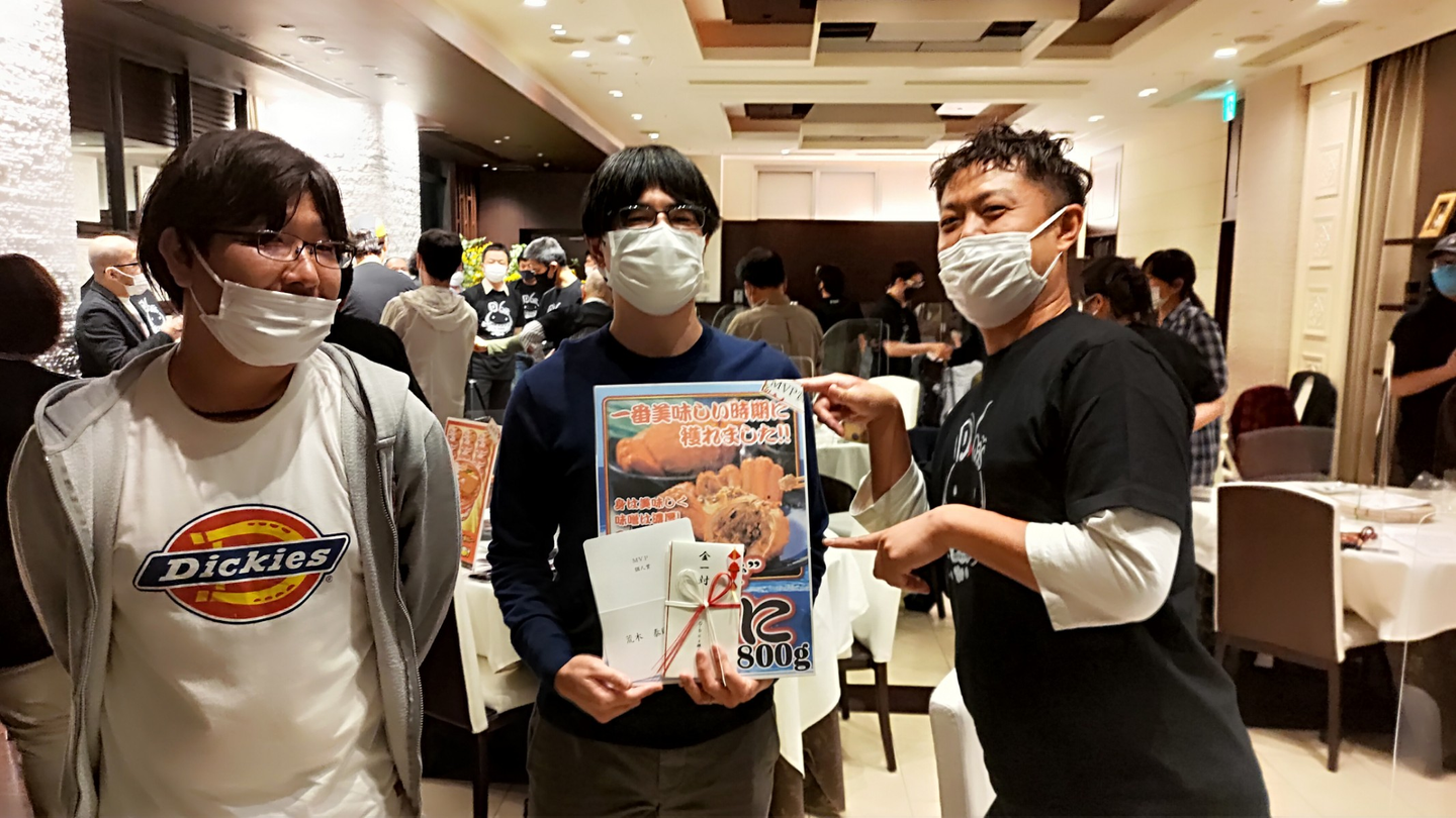 (▲ 写真左:谷田部さん 写真中央:MVP賞を受賞した荒木さん 写真右:取締役 蛭川)