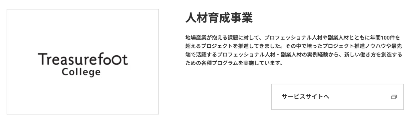 トレジャーフットでは、行政からの案件を受託し、講座やイベントなどを通して、地方人材のスキルアップを支援したり、福利厚生コンテンツとして、オンライン学習プログラムを提供したりしています。