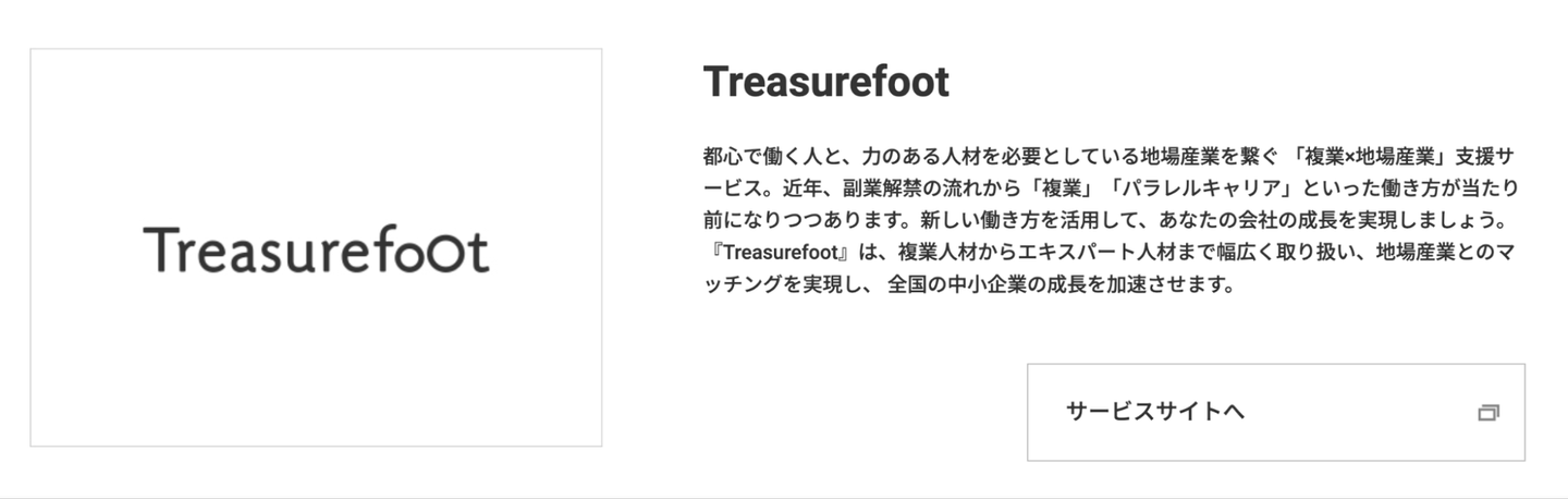 外部人材活用は、これまで、累計マッチング数300、登録者数5,000を超えるトレジャーフットのメイン事業です。プロフェッショナルな専門知識を持つ外部人材を保有し、クライアントである地域企業とのマッチングを通して課題解決支援をしています。
