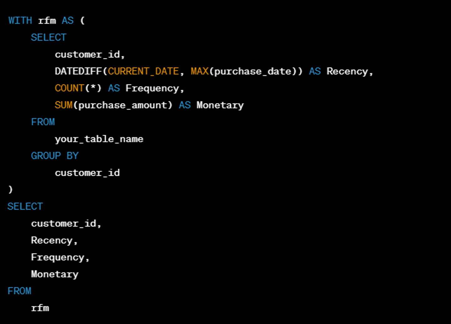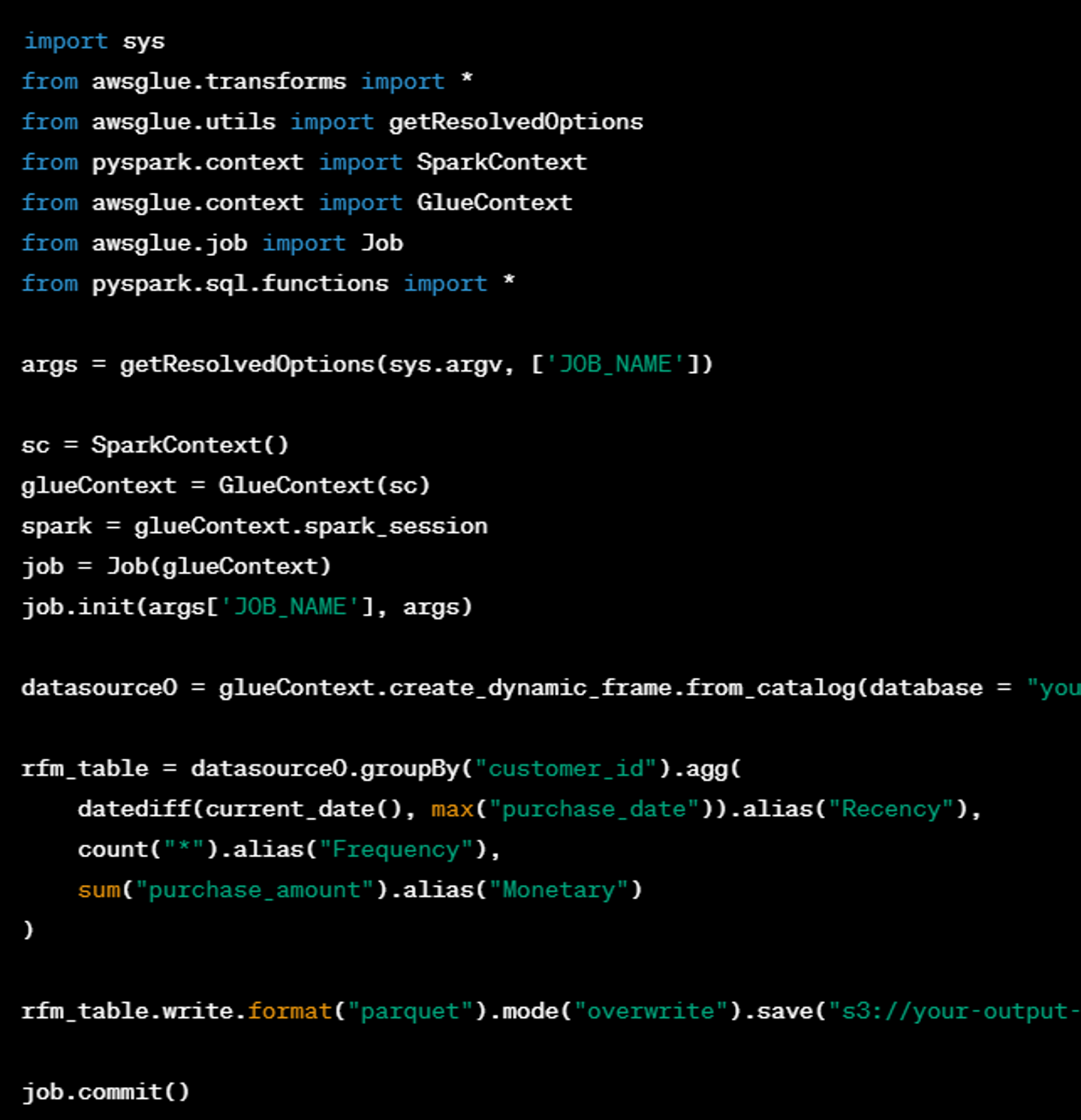 Glueでは、Sparkなどの知識やGlue固有の複雑な仕様が必要となるため、新規作成する場合だけでなくデバッグも困難です。一方、dbtは設計思想がある程度決まれば、SQLを書くだけで実現できます。RFM分析についてのサンプルを以下に記載します。