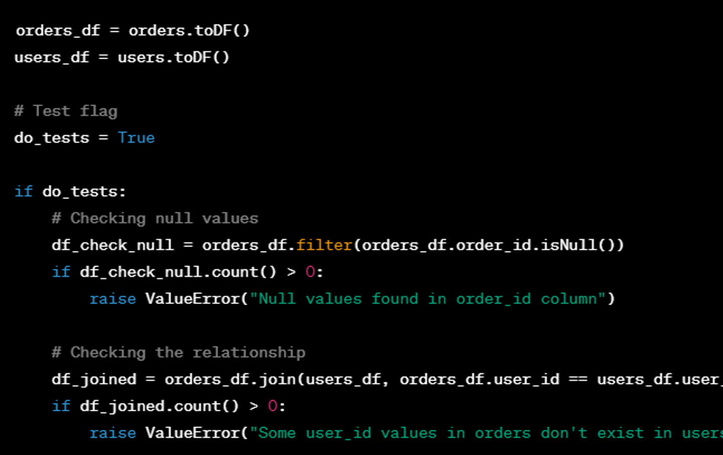テストフレームワークが用意されており、簡単に実装できます。また、データ分析とテストを分けて実行する場合も容易です。マクロも定義できるため、カスタムしたテストを使い回すことも容易です。