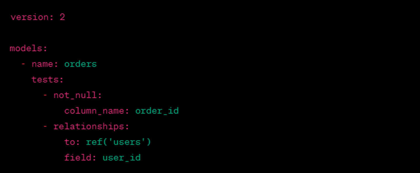 サンプルとして、not_nullテストと、参照整合性を検証するrelationshipsテストについて、記載します。