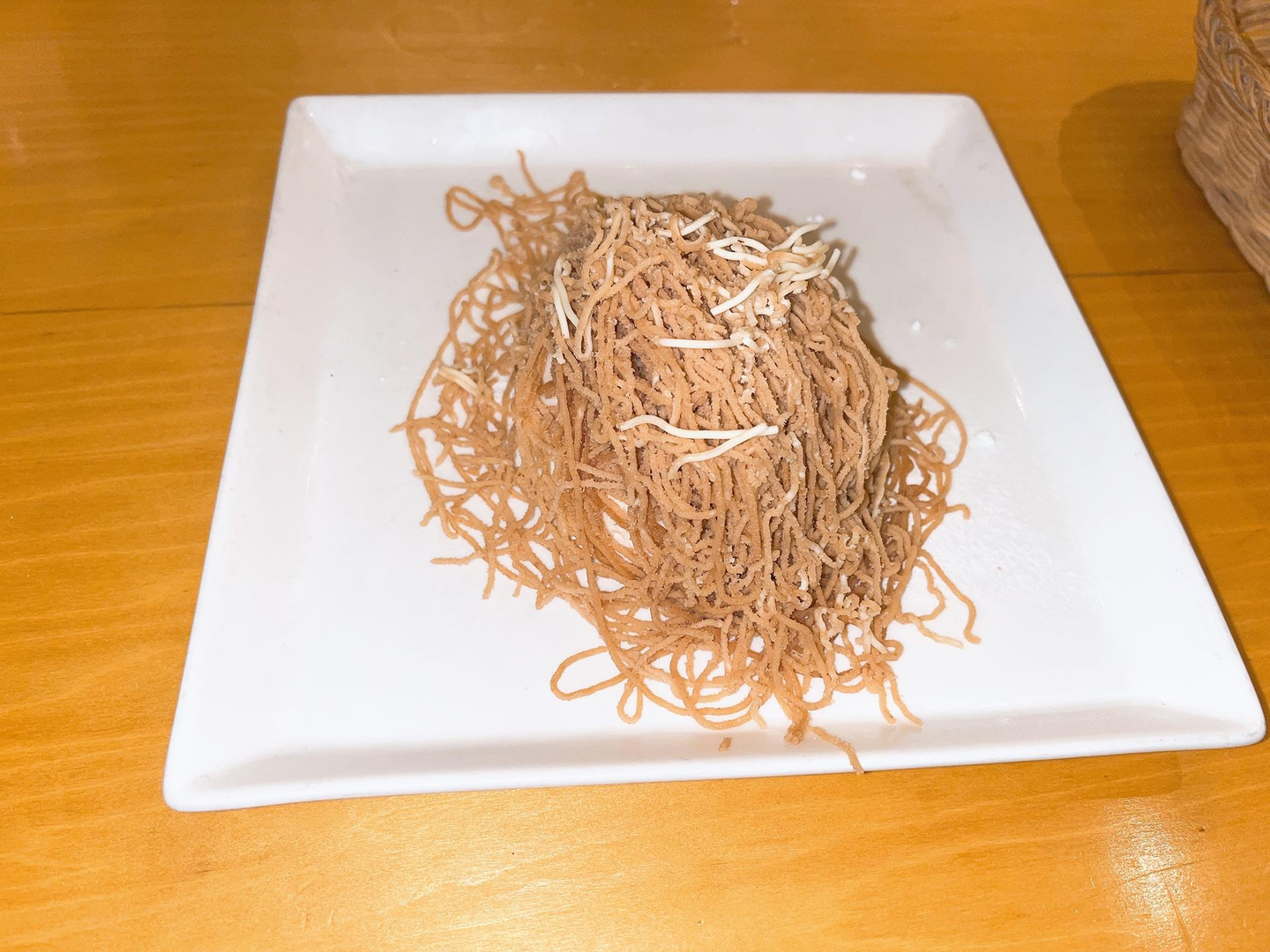 デザートでモンブランを食べたのですが、目の前でクリームを搾ってくれるスタイルで、とっても美味しかったです!