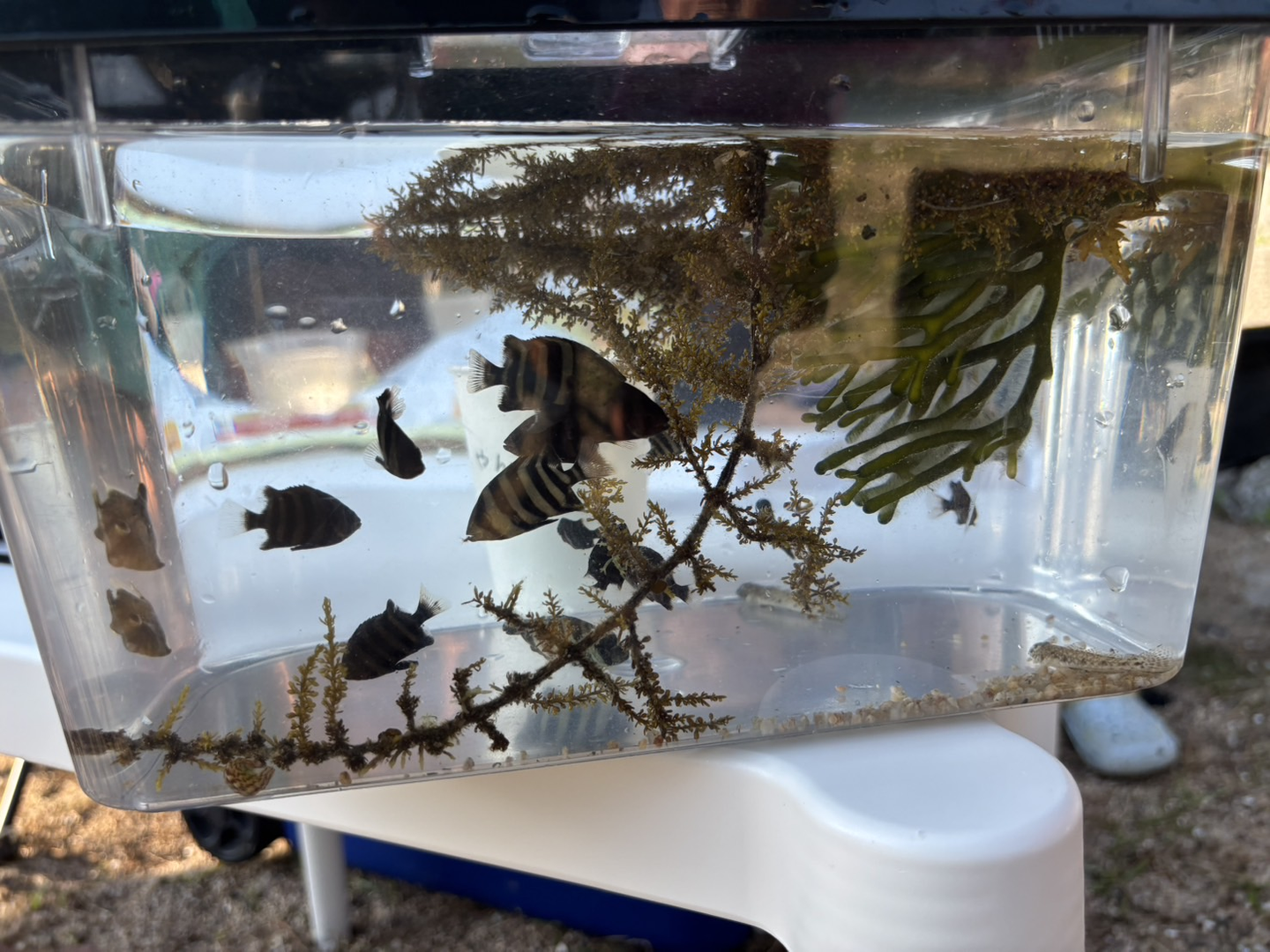 海がとても綺麗で、すぐそばに綺麗なお魚の群れが♡
