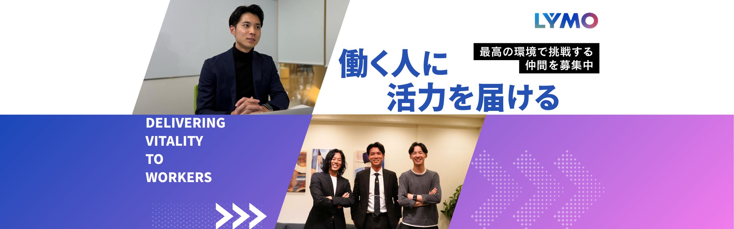 2024年8月、「働くひとに活力を届ける」というミッションを掲げ、株式会社LYMOを創業しました。 私たちが考える「活力」は、2つの要素から生まれます。 1つ目は、一歩ずつ着実に前へ進んでいるという実感がもたらす「前進感」。 2つ目は、仲間と同じ目標に向かい、心をひとつにして進むことで得られる「一体感」です。 これら2つを届けられるような事業を展開し、より多くの働くひとへ活力を届けます。