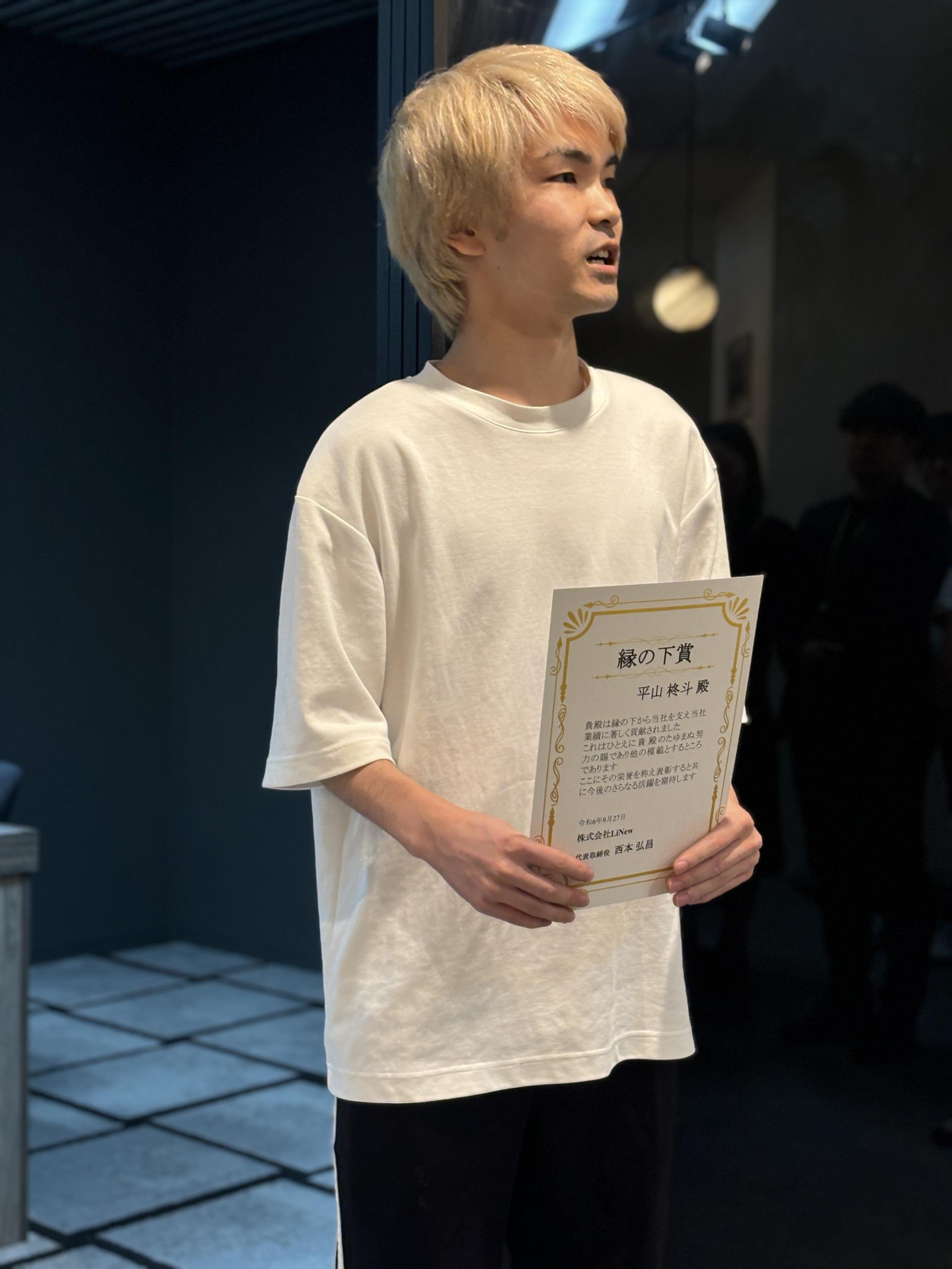 「縁の下賞」は言葉の通り、縁の下から会社を支え会社の円滑な運営に貢献したメンバーに贈られる賞です。