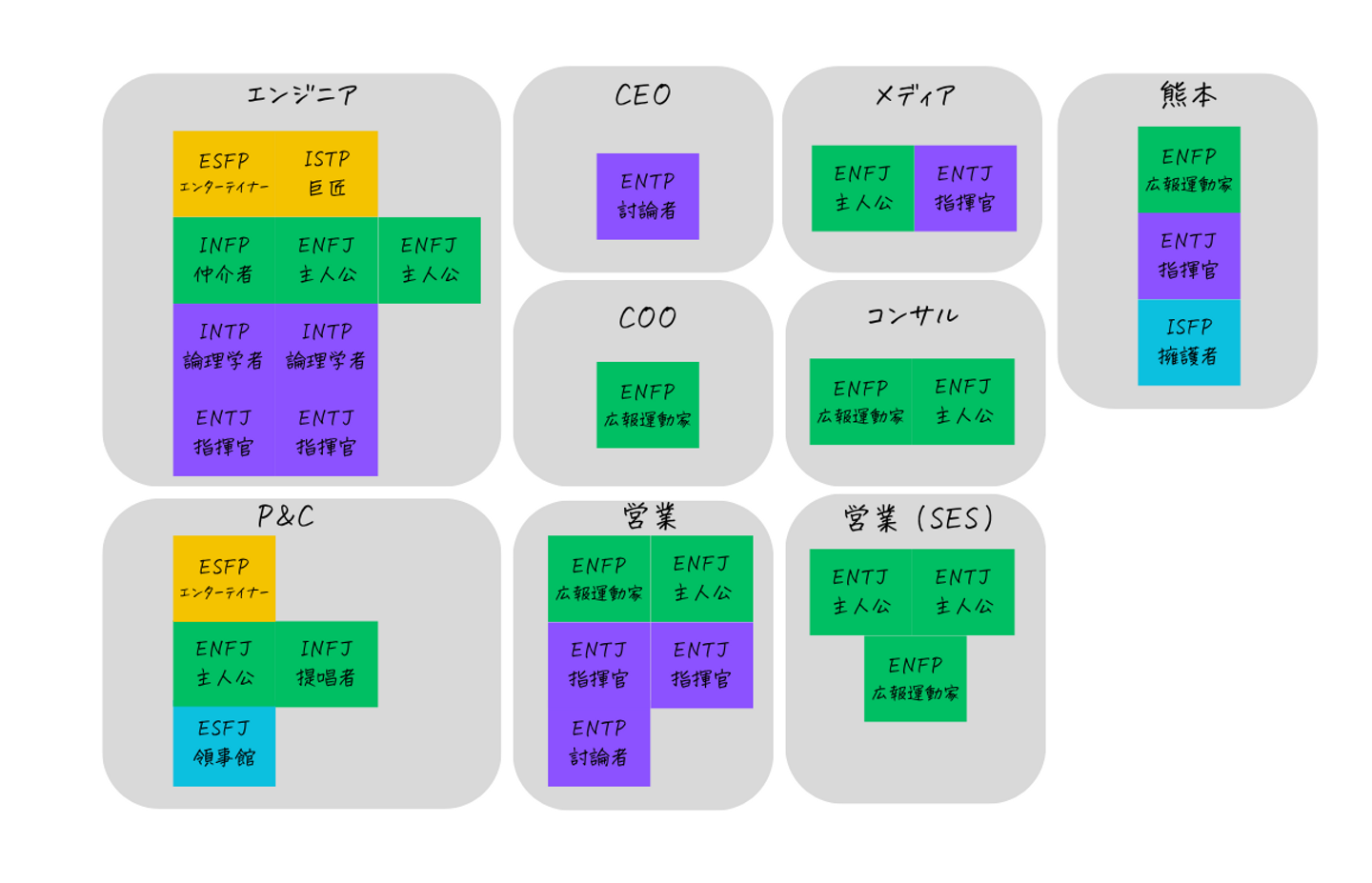長くなるので、今回は社長さん組、P&C、エンジニア、メディア部門を見ていきます!!